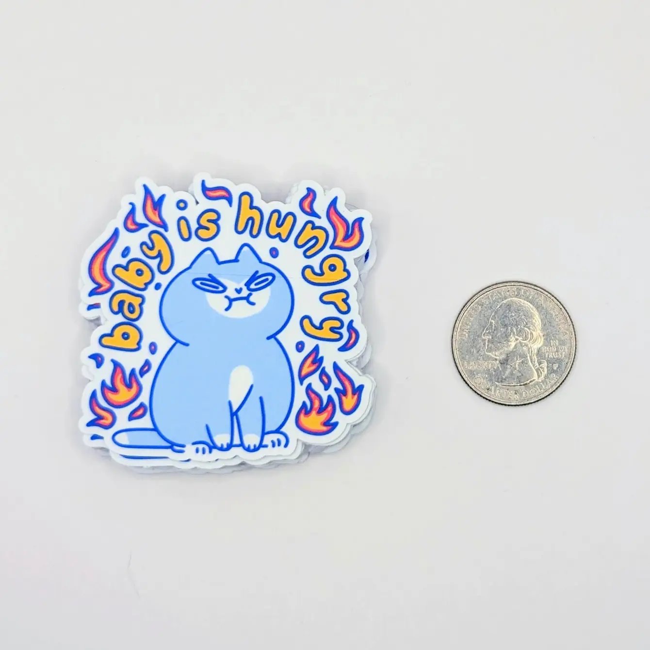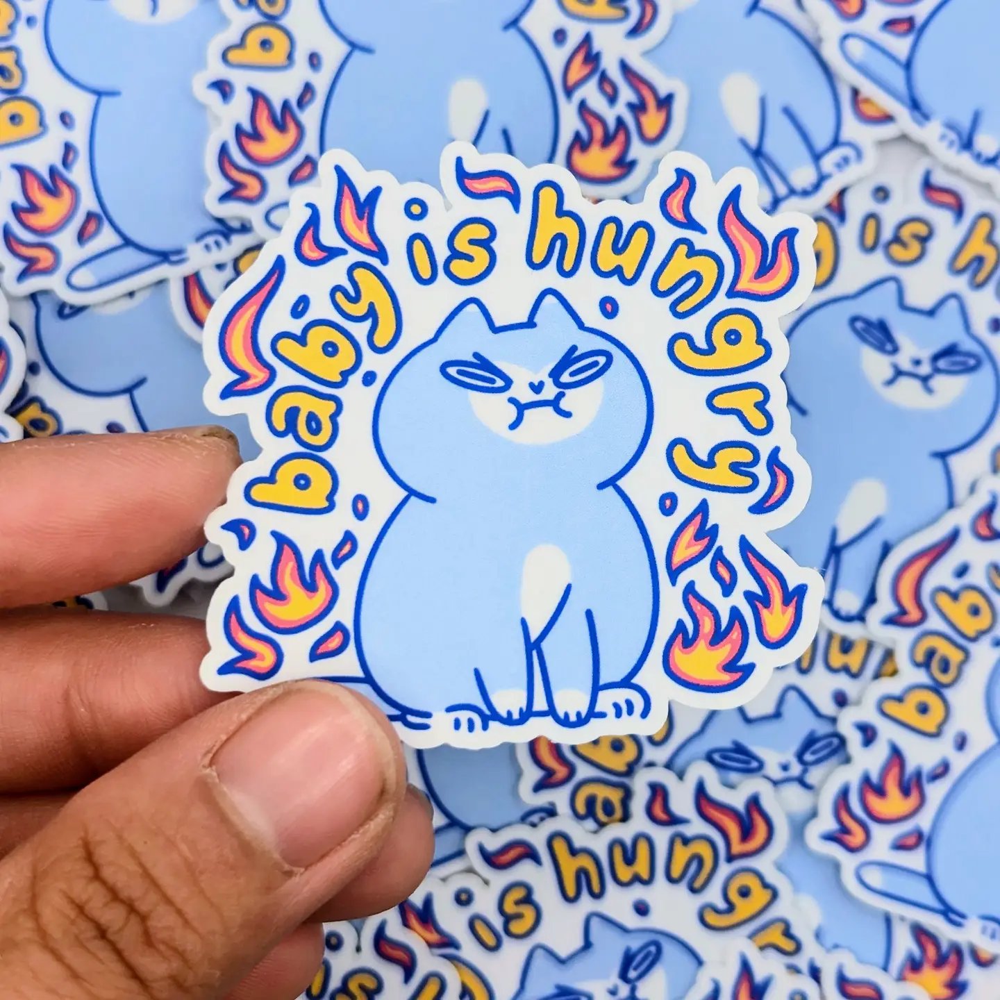 Unleash the fiery spirit of this fierce feline with our "Baby is Hungry" vinyl sticker! Perfect for those who understand the power of a hangry kitty, this 2" sticker features an adorably angry cat surrounded by vibrant flames. Made from durable, waterproof vinyl, this sticker is built to withstand the elements—whether you stick it on your water bottle, laptop, or anywhere else you want to show off your sassy side. Add a touch of attitude and humor to your collection with this cute yet fiery design!