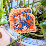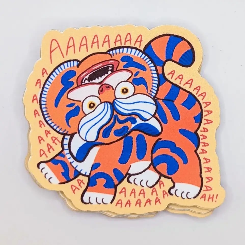 Unleash the chaos with this Screaming Tiger Sticker! Featuring a hilariously distressed tiger in bold, vibrant colors, this vinyl sticker is perfect for adding personality to your laptop, water bottle, journal, or anywhere that needs a bit of unhinged energy. Inspired by traditional Asian tiger motifs with a modern, meme-worthy twist, this high-quality waterproof sticker is a must-have for fans of quirky and expressive art.