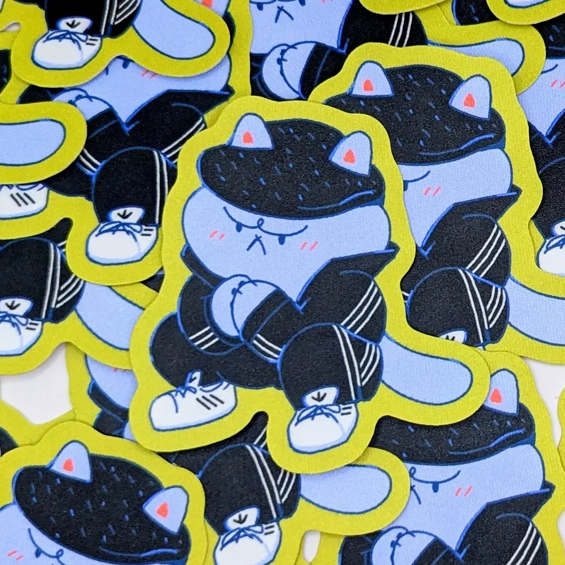 Add some attitude to your sticker collection with this Slav Squat Cat vinyl sticker! This grumpy cat is rocking full gopnik streetwear, complete with a tracksuit, cap, and classic Adidas-style sneakers—ready to squat and judge your life choices. Inspired by Slavic hardbass culture and meme humor, this sticker is perfect for laptop decorations, water bottles, skateboards, or anywhere you want to add some Eastern European flair.